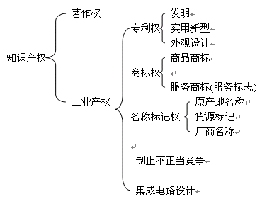 狭义概念上的知识产权只包括著作权、专利权、商标权、名称标记权、制止不正当竞争,而不包括科学发现权、发明权和其他科技成果权。
